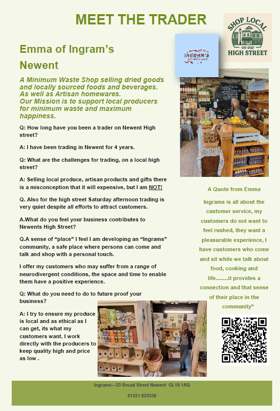 This month we’re shining the spotlight on Ingram’s, run by Emma, who has been part of Newent High Street for the past four years.Ingram’s is